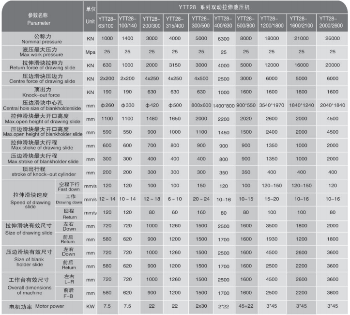 本系列液壓機具有空程速度快、效率高、能耗小、壓邊和拉伸力均可調(diào)等特點,是薄板成形的理想設(shè)備。